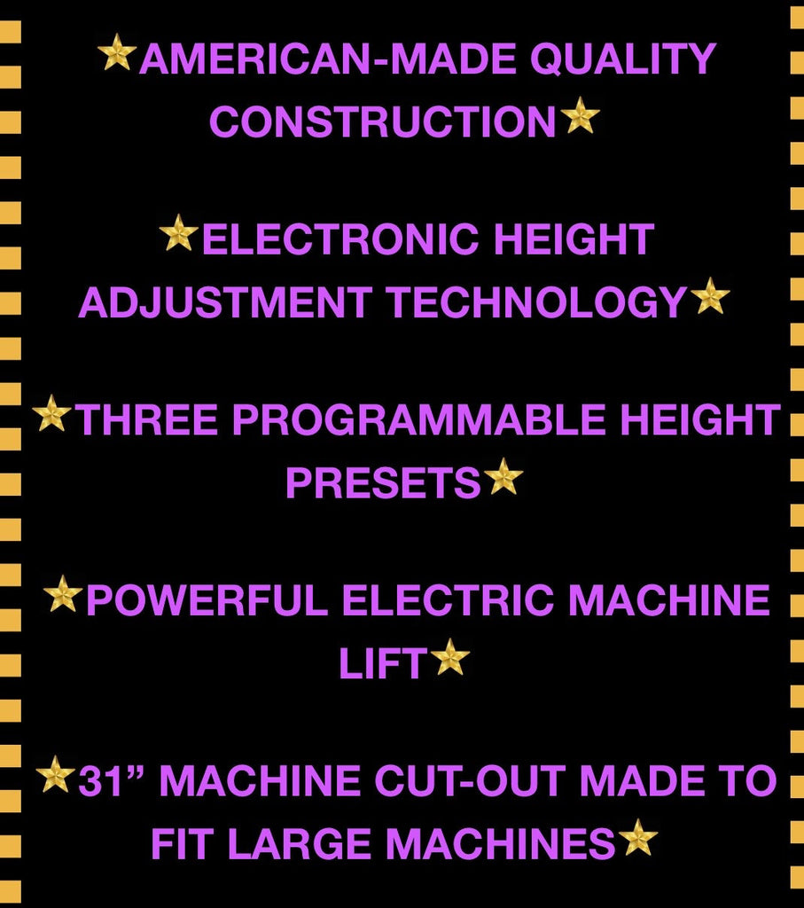 The beauty of the electric lift is getting your sewing machine exactly where you want it with only the push of a button, no force is needed to move heavy sewing machines.